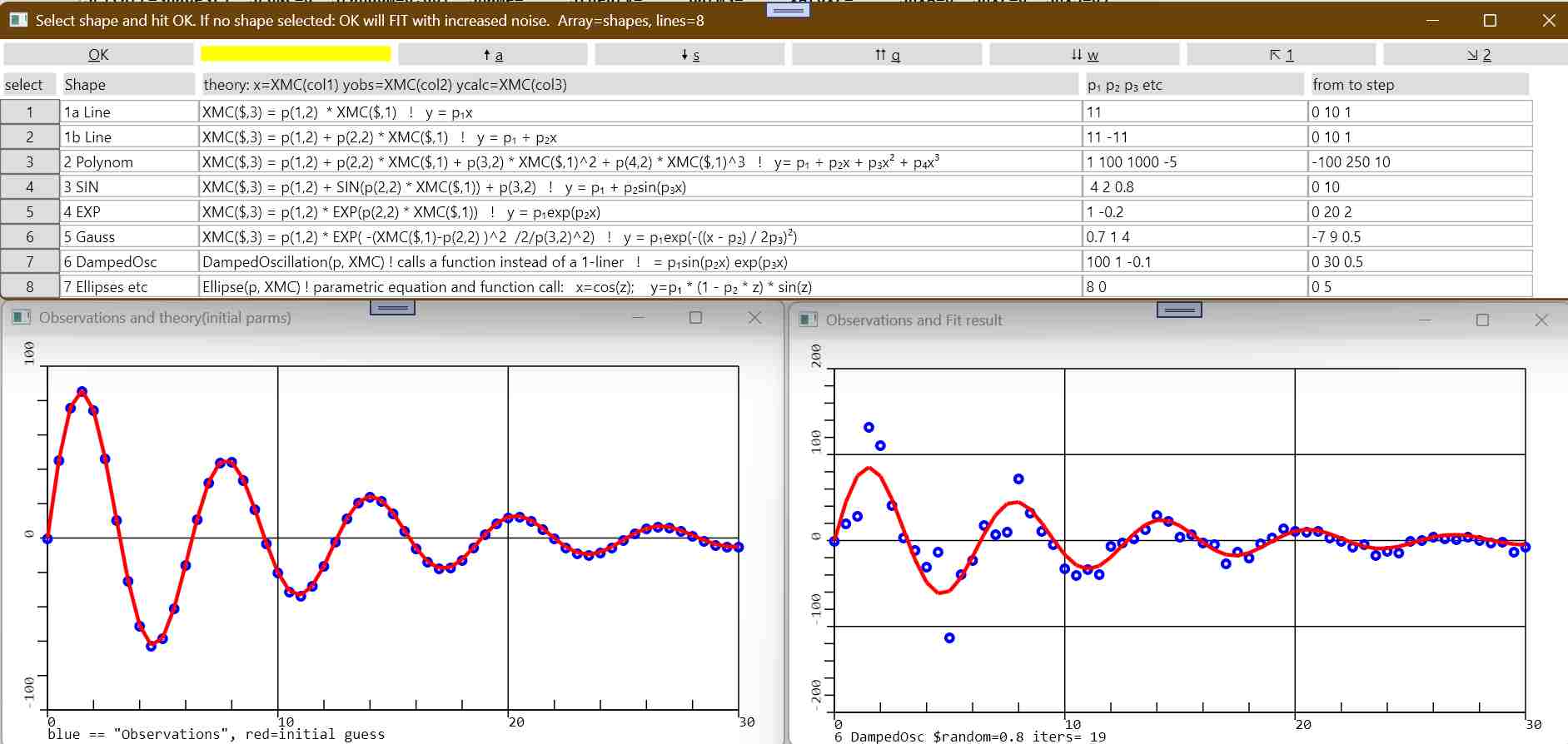 DLG(X=0, TI='Select shape and hit OK. If no shape selected: OK will FIT with increased noise.',