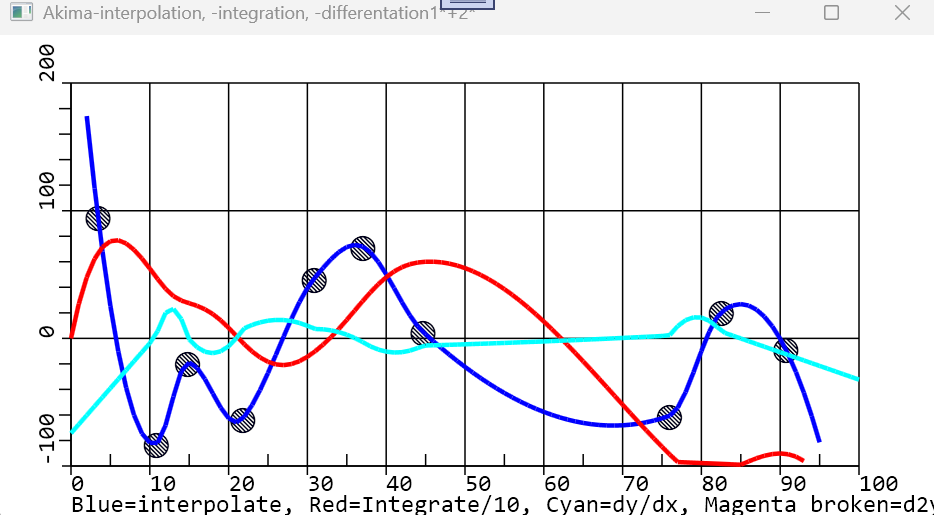 DLG(TI='Akima-interpolation, -integration, -differentation1*+2*', Rs=2, Cs=2, AX=2,